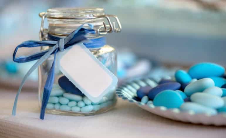 Barattoli di vetro, che possono essere decorati con dei nastri colorati o degli stickers che ricordano il giorno del battesimo, come un ciuccio. Al loro interno ad esempio potrebbero essere messi dei chicchi di caffè, infusi di tè, spezie varie ecc.
